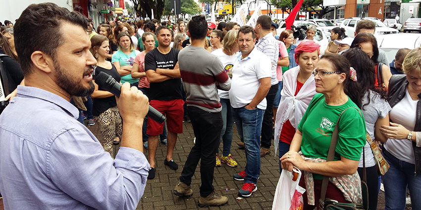Hoje pela manhã trabalhadores, professores, estudantes, movimentos sociais e sindicatos participaram de um grande ato contra a Reforma da Previdência do presidente Michel Temer. Centenas de pessoas reuniram-se em frente à Havan e, após, em caminhada pela Avenida Getúlio Vargas, passaram pelos bancos Itaú, Santander, Banco do Brasil e Bradesco.
