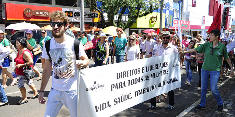 Nesse ano, o Dia Internacional da Mulher foi marcado não apenas pelas lutas por respeito, dignidade e contra as diversas formas de violência, mas também contra as reformas propostas pelo governo de Michel Temer, especialmente a reforma da Previdência. Em Chapecó, a mobilização e ato na praça central reuniu cerca de 5 mil pessoas. Municípios da região também participaram do ato em Chapecó. Em São Miguel do Oeste, também houve manifestação. Os diretores, delegados regionais e funcionários do Sinproeste participaram dos atos.