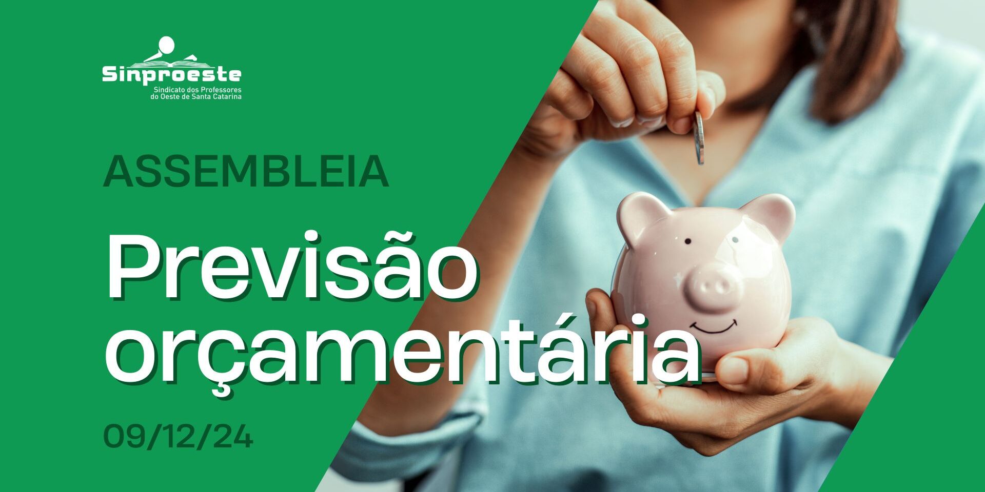 A direção do Sinproeste convoca todos os professores, sócios e não sócios, a se reunirem em Assembleia Geral de previsão orçamentária para o exercício de 2025/2026. A assembleia será no dia 09 de dezembro de 2024, com início às 08h30 em primeira convocação e às 08h45 em segunda e última convocação.