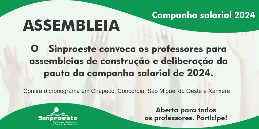 A direção do Sinproeste convoca os professores, sócios e não sócios, para assembleias de discussão e deliberação da pauta de reivindicações da campanha salarial do próximo ano. As assembleias aconteceram em diversas instituições de ensino, presencialmente. Nas universidades, o encontro será online.