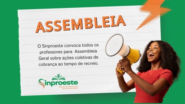 O Sinproeste convoca todos os professores, sócios e não sócios, para se reunirem em Assembleia Geral na quinta-feira da semana que vem, dia 05 de fevereiro de 2026, às 13h30. O objetivo é deliberar sobre ações coletivas de cobrança ao tempo de recreio dos professores. A assembleia acontecerá de forma híbrida: na sede do sindicato,…