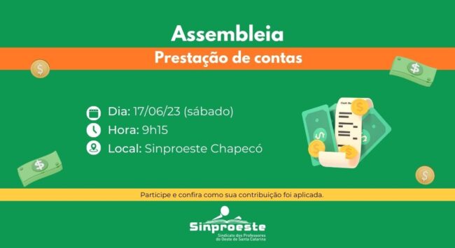 Em vista da situação climática vivenciada em Santa Catarina nos últimos dias e previsão de continuidade de tempo severo, e da dificuldade da categoria em se afastar dos seus locais de trabalho em função de atividades junto às instituições de ensino, o Sindicato dos Professores do Oeste de Santa Catarina – Sinproeste, informa o ADIAMENTO…