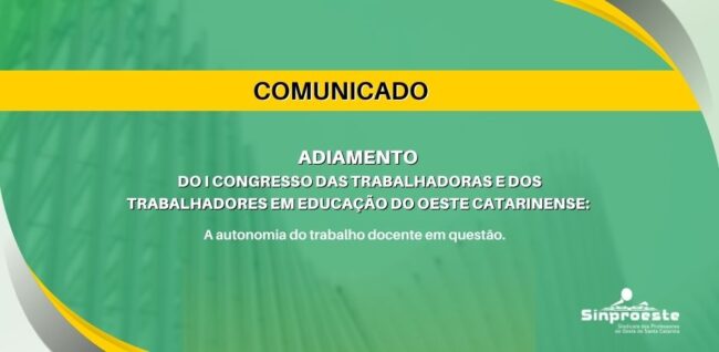 COMUNICADO DE ADIAMENTO: I Congresso das Trabalhadoras e dos Trabalhadores em Educação do Oeste Catarinense