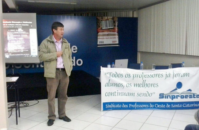 Professor Delmir José Valentini lança livro durante seminário do Sinproeste
